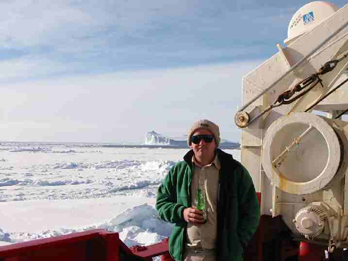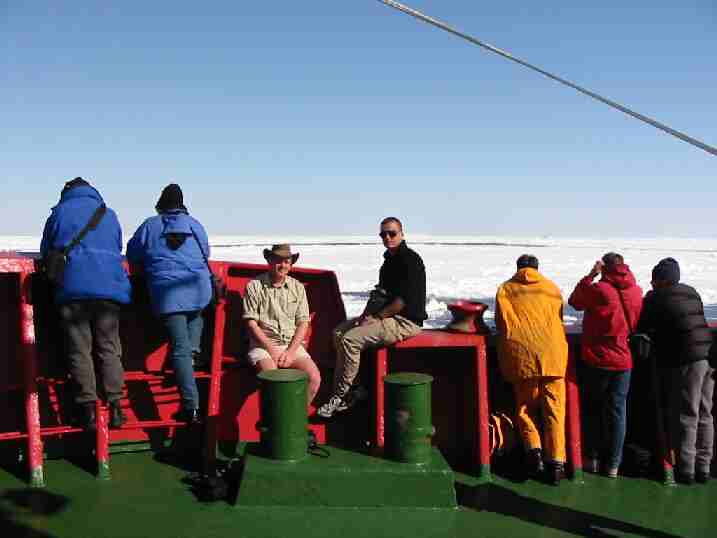 We had a day break from field training today, as we creeped inexorably closer to Davis. The morning was a bit overcast, but after lunch blue skies and absolutely still weather reigned. The air temperature of 5° seemed positively tropical, after the last few days, and warm in the sheltered sun. The Captain was using the open air starboard bridge, finding convenient strings of leads of open water. Occasionally he would have to back up the ship and ram the floes, the ship shuddering and bending with the immense forces. The ice floes often a few metres thick would crack up and be pushed some distance, often alarming squads of adelie penguins or crabeater seals. Because of the fine weather, a BBQ was declared above the poop deck and was very much enjoyed by all. Many passengers were badly affected by the nasty virus circulating around the ship, including Anya and Tom, alas. One wonders what devastation will be unleashed on the Davis winter group in a couple of days !! The ship might have to hoist the yellow flag. The perfect conditions lasted well into the evening, with perfect relections of the bow in the inky blue open water. The sun finally set well after midnight because of our western longitude, the air temperature dropping to a crisp -4°. Progress was surprisingly good