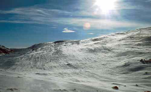 Raging katabatic wind drift off the Prince Charles Mountains