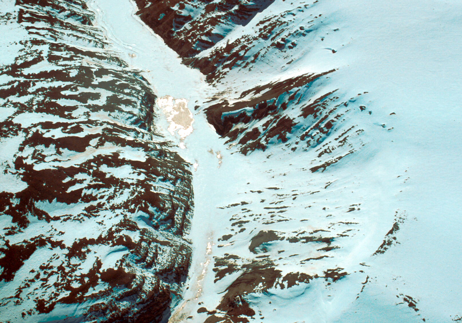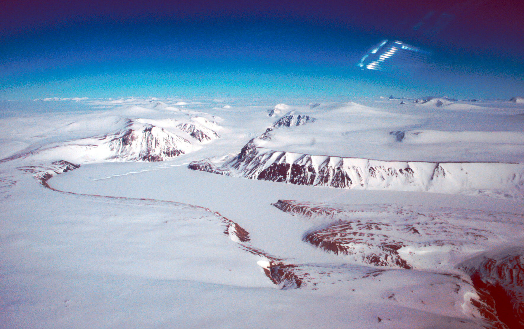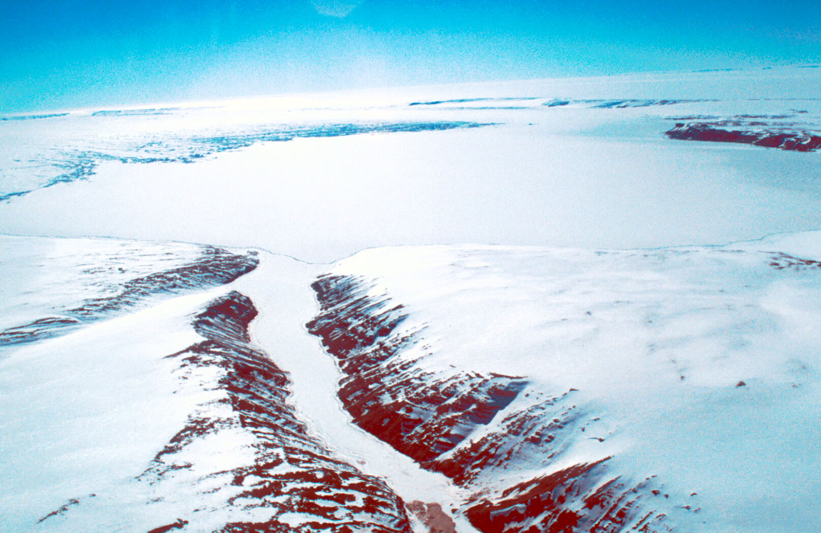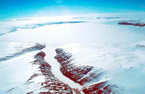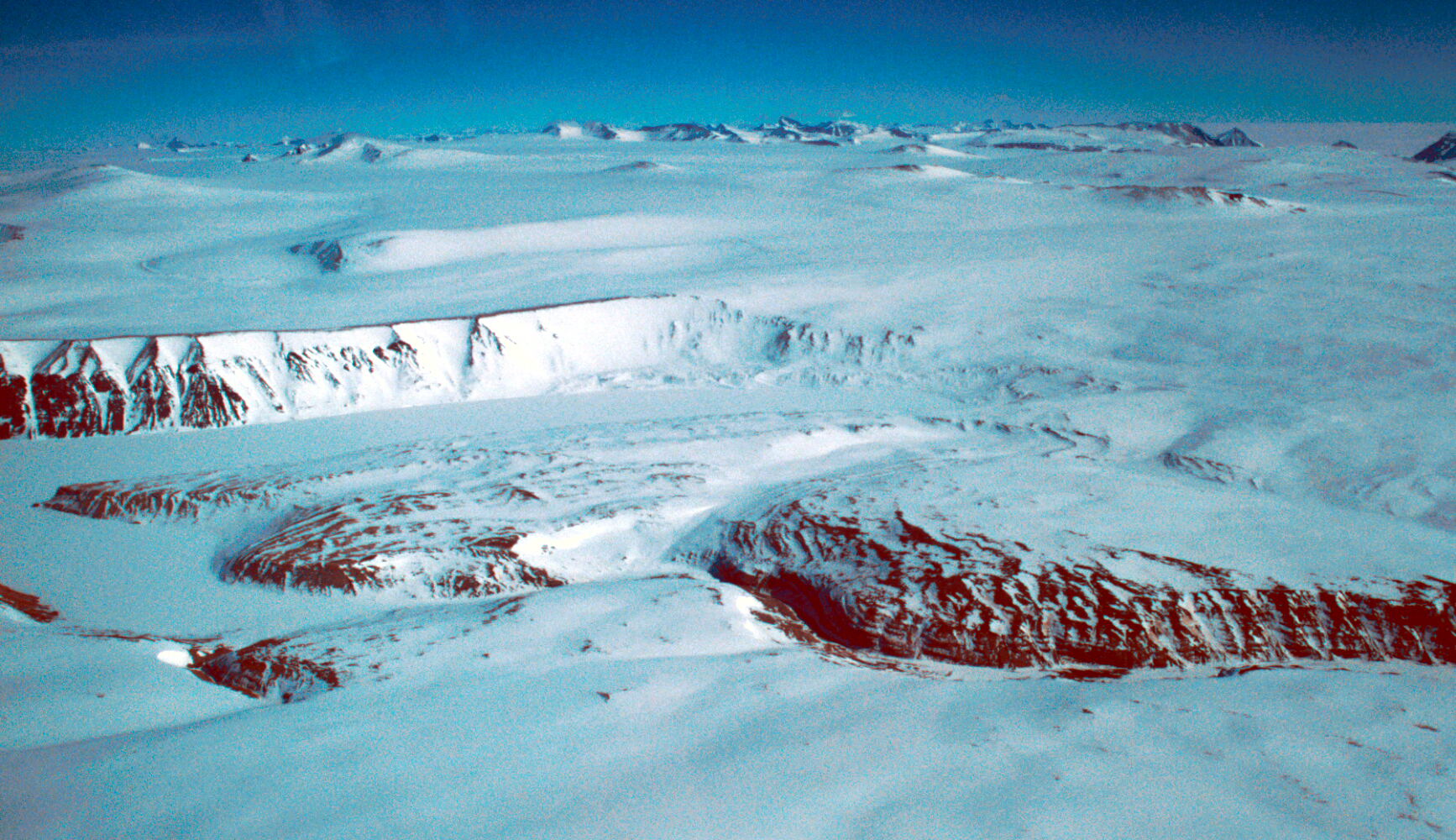 Prince Charles Mountains, Radok Lake and Pagodroma Gorge looking west