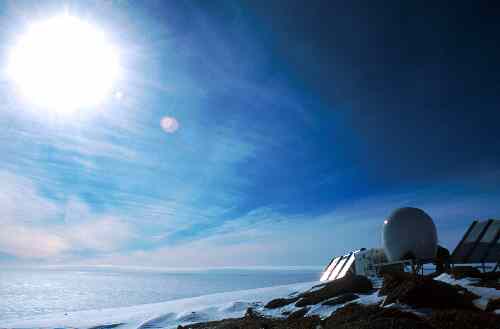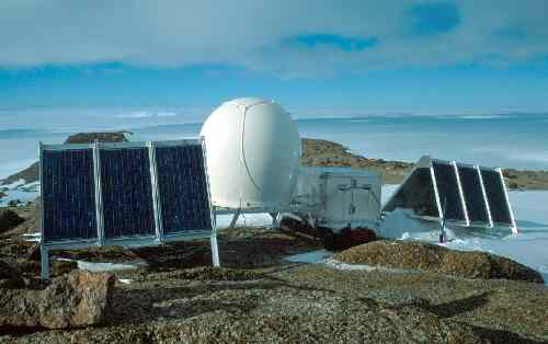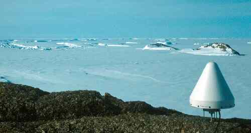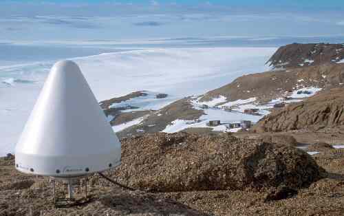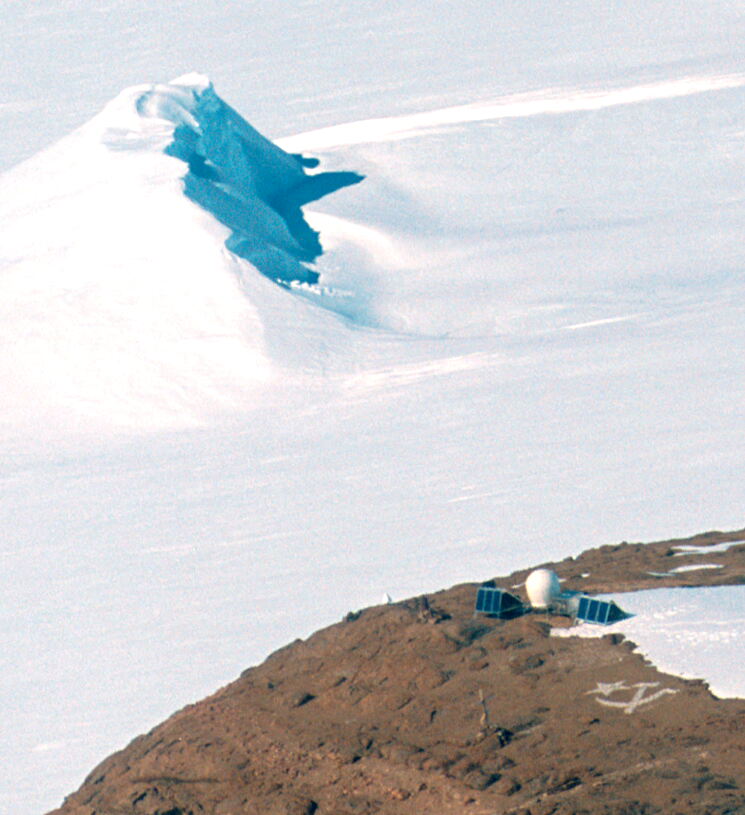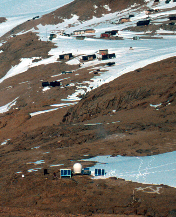 Ashtech antenna and radome at Landing Bluff, Druzhnaya IV in the background