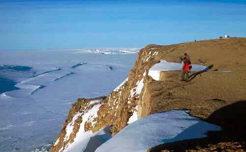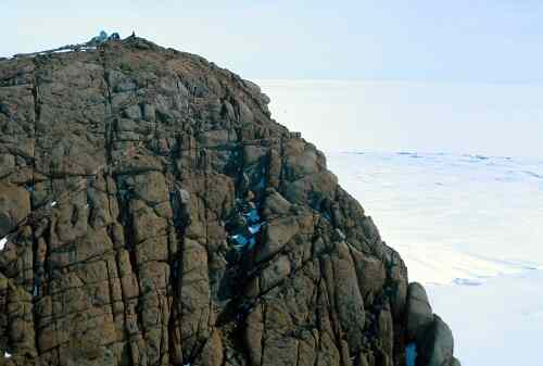 Landing Bluff, summit view looking north, Amery Ice shelf dropping to sea level on the left
